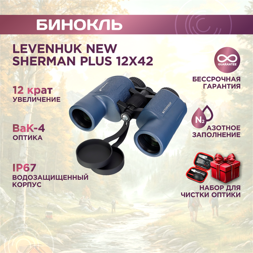 Бинокль Levenhuk New Sherman PLUS 12x42, материал оптики - BAK-4, Porro призмы, корпус алюминий, металл, резина