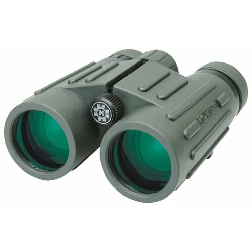 зеленыйБинокль Konus ARMY 10x50 WA, Porro, Bak-4 Бинокль Konus ARMY 10x50 WA (WIDE ANGLE) с широким полем зрения предназначен для использования на охоте, в походе, на морской прогулке, при наблюдении за дикой природой. Бинокль сделан по классической Porro-схеме. Большие объективы диаметром 50 мм и оптические элементы, выполненные из качественного стекла BaK-4, с многослойным просветляющим покрытием обеспечивают качественное и яркое изображение и позволяют использовать бинокль при слабой освещённости. Фокусировка выполняется с помощью центрального фокусировочного колеса. Кольцо диоптрийной настройки находится на правом окуляре. Бинокль отлично подходит для комфортного наблюдения в течение длительного времени благодаря эргономичному дизайну. Резиновое покрытие защищает корпус от ударов, а также позволяет надёжно удерживать бинокль даже мокрыми руками, не боясь, что он выскользнет. Бинокль можно устанавливать на штатив – в передней части корпуса есть стандартное резьбовое крепление для штативного адаптера (адаптер прио