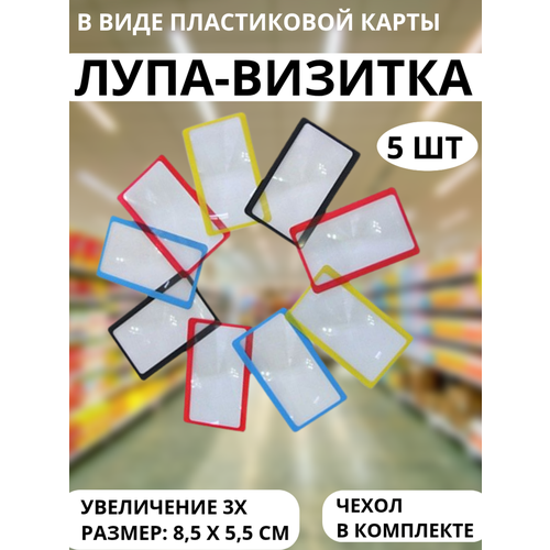 Лупа в виде пластиковой карты ( цвет прозрачный ) Увеличение 3х Размер: 8,5 х 5,5 см Материал ПВХ