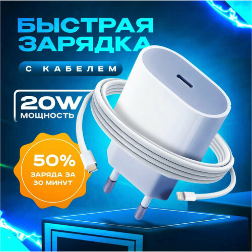 Комплект: быстрое сетевое зарядное устройство 20W с кабелем Type-C - Lightning для Apple iPhone и iPad / поддержка Power delivery (PD)