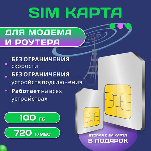 Сим-карта для интернета 100ГБ, модемов и роутеров, автомагнитол, навигаторов и фотоловушек