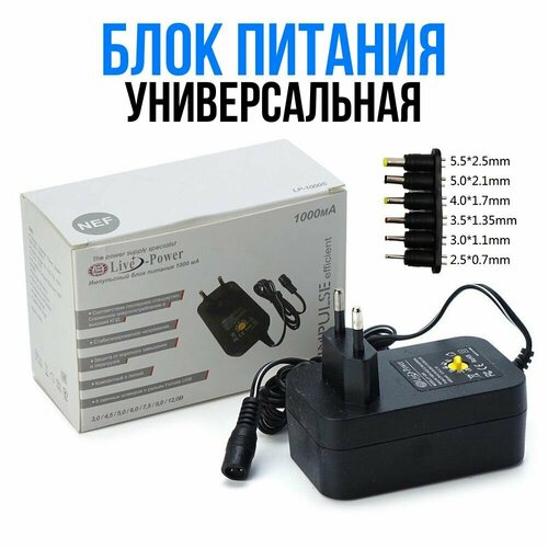 Блок питания универсальный 3В-12В, 2100mA 220 - 3В-12В / 2А, + 6 насадок и разъем USB, для роутеров, цифровых приставок, шуруповертов, тонометров