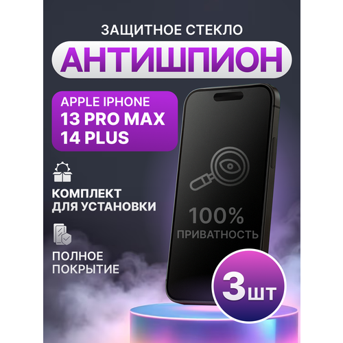 Защитное стекло антишпион для Apple iPhone 13 Pro Max, 14 Plus полное покрытие (полноэкранное) / 3 шт