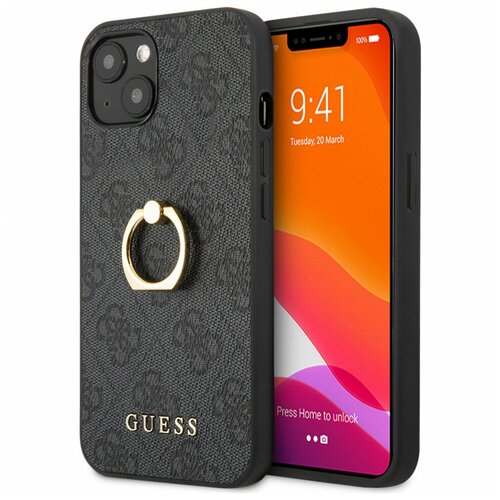 Чехол CG Mobile Guess PU 4G + Ring Hard для iPhone 13, цвет Серый (GUHCP13M4GMRGR)