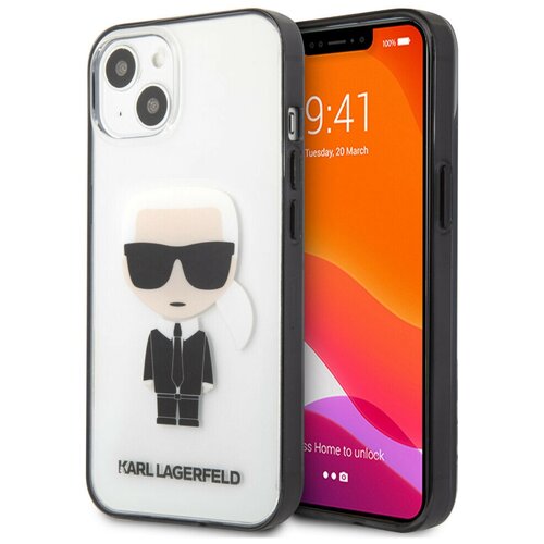 Чехол CG Mobile Karl Lagerfeld PC/TPU Ikonik Karl Hard для iPhone 13, цвет Прозрачный/Черный (KLHCP13MHIKCK)