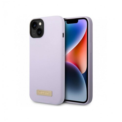 Чехол CG Mobile Guess Liquid silicone Plate metal logo Hard (MagSafe) для iPhone 14, цвет Сиреневый (GUHMP14SSBPLU)