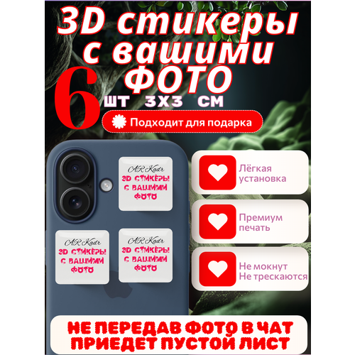 3D стикеры на телефон с вашим фото размер 3 на 3 см, комплект 6 шт.