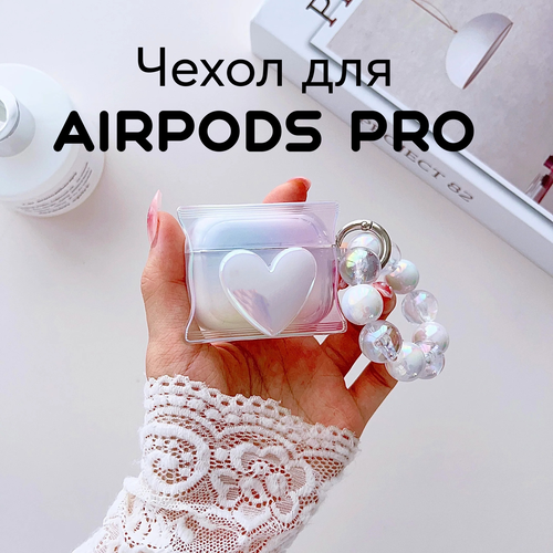Чехол для AirPods PRO Сердце 3D с голографическим шармом из бисера