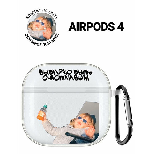 Чехол на Apple AirPods 4 с принтом "Быть счастливым" прозрачный