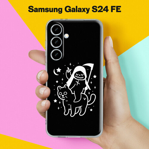 Силиконовый чехол на Samsung Galaxy S24 FE с принтом "Черный Кот" с прозрачными бортиками