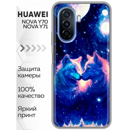 Дизайнерский силиконовый чехол для Хуавей Нова У70 / Huawei Nova Y70 Волк и волчица