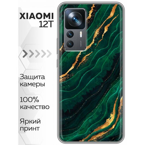 Дизайнерский силиконовый чехол для Сяоми 12Т / Xiaomi 12T Мрамор зеленое золото