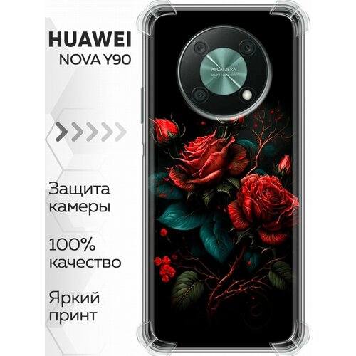 Дизайнерский силиконовый с усиленными углами чехол для Хуавей Нова У90 / Huawei Nova Y90 Розы красные