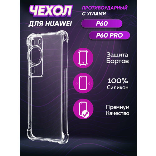 Силиконовый глянцевый транспарентный чехол с усиленными углами для Huawei P60 / P60 Pro