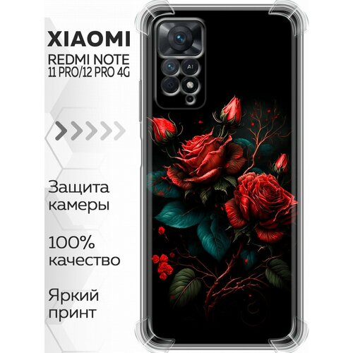 Дизайнерский силиконовый с усиленными углами чехол для Сяоми Редми Ноут 12 Про 4Ж / Xiaomi RedMi Note 12 Pro 4G Розы красные