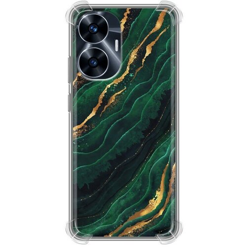 Дизайнерский силиконовый с усиленными углами чехол для Реалме С55 / Realme C55 Мрамор зеленое золото