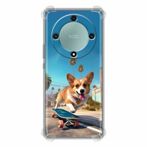 Дизайнерский силиконовый с усиленными углами чехол для Хонор Х9а / Huawei Honor X9a Корги на скейте