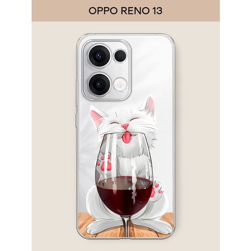 Чехол на Oppo Reno 13 / Оппо Рено 13 с принтом Кот с бокалом, прозрачный