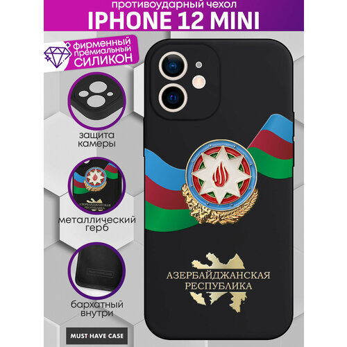 Чехол на iPhone 12 Mini с Металлическим Гербом Азербайджана с картой