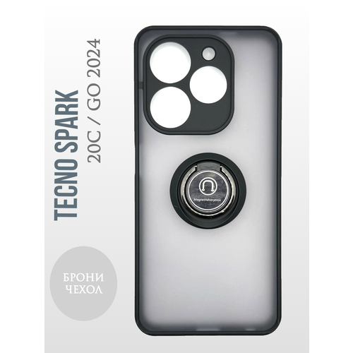 Чехол Tecno Spark 20c / GO 2024 противоударный (Брони чехол) с кольцом-подставкой и металлической пластиной