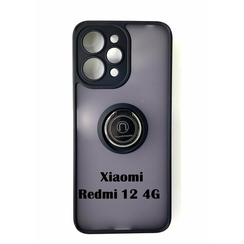 Чехол Xiaomi Redmi 12 4G противоударный (Брони чехол) с кольцом-подставкой и металлической пластиной