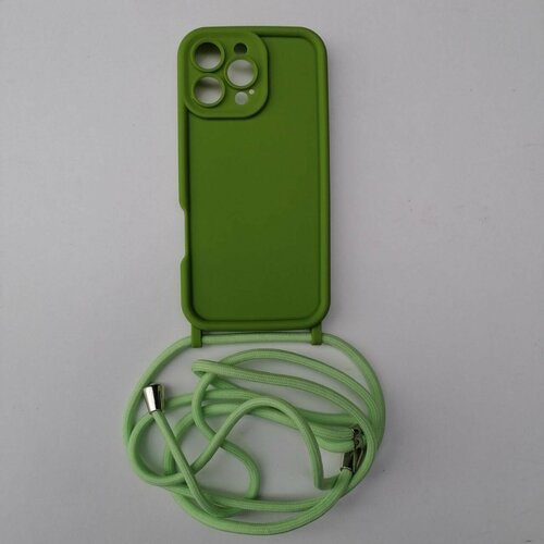 Чехол-накладка для IPhone 13 Pro из толстого высоко-качественного силикона и веревкой-цепочкой на шею.