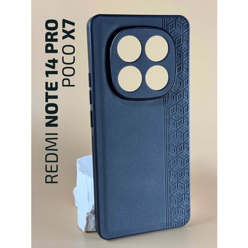 Чехол кожаный на Redmi Note 14 Pro /Poco X7 (Чехол на Редми Нот 14 Про/Поко Х7), с защитой камеры, геометрия, серый