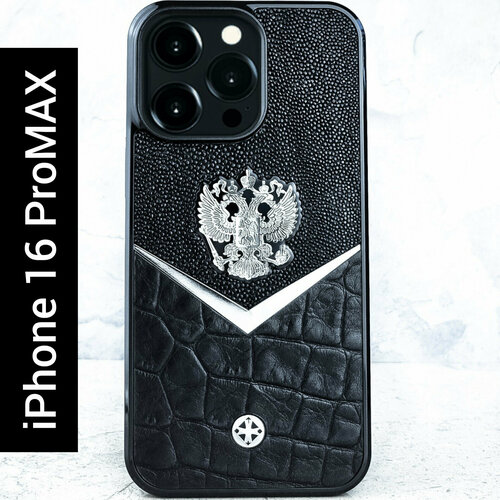 Чехол iPhone 16 Pro Max / Герб РФ Stingray Daw CROC Leather - Euphoria HM Premium - натуральная кожа, металл