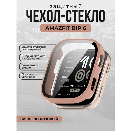 Защитный чехол со стеклом для Amazfit Bip 6, вишнево-розовый