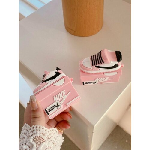 Чехол для AirPods 4, розовый, силиконовый, "Найк", с карабином