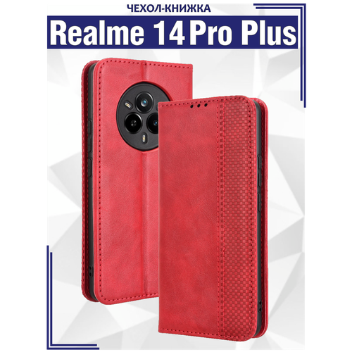 Чехол книжка для Realme 14 Pro Plus (5G) с магнитом и отделением под карты / Реалми 14 Про Плюс (красная)