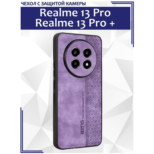 Чехол для Realme 13 Pro (5G)/ Realme 13 Pro Plus кожаный с тиснением / Реалми 13 Про и 13 Про + с защитой камеры (фиолетовая)