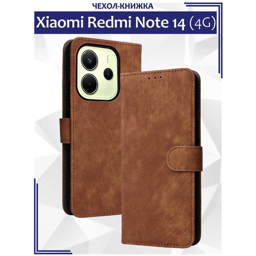 Чехол книжка для Xiaomi Redmi Note 14 (4G) c магнитной застежкой / Сяоми Редми Ноут 14 4G c отделением под карты (коричневая)
