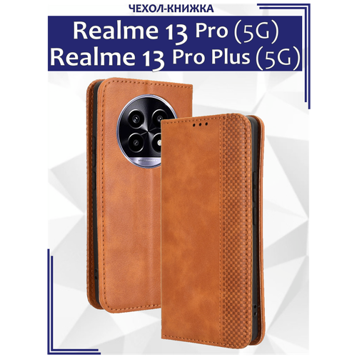 Чехол книжка для Realme 13 Pro (5G)/ Realme 13 Pro Plus с магнитом и отделением под карты / Реалми 13 Про и 13 Про + (коричневая)