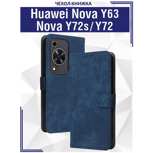 Чехол книжка для Huawei Nova Y63 /Nova Y72s /Nova Y72 c магнитной застежкой / Хуавей Нова Y63, Y72s, Y72 c отделением под карты (синяя)