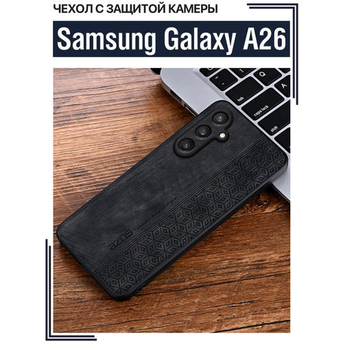 Чехол для Samsung Galaxy A26 кожаный с тиснением / Самсунг А26 с защитой камеры (черная)