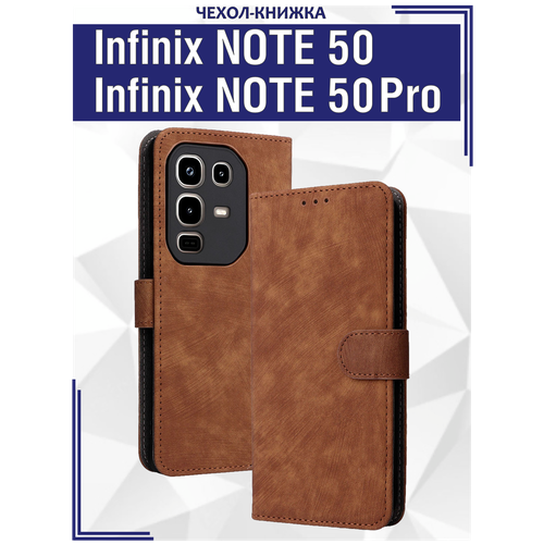 Чехол книжка для Infinix Note 50 (4G)/ Note 50 Pro (4G) c магнитной застежкой / Инфиникс Нот 50, Нот 50 Про c отделением под карты (коричневая)
