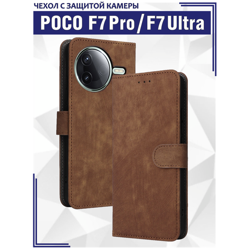 Чехол книжка для Poco F7 Pro/ Poco F7 Ultra c магнитной застежкой / Поко Ф7 Про, Ф7 Ультра c отделением под карты (коричневая)