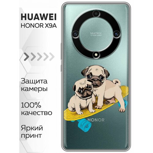 Полупрозрачный дизайнерский силиконовый чехол для Хонор Х9а / Huawei Honor X9a Мопсы