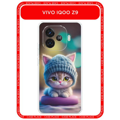 Чехол на Vivo iQOO Z9/Z9 Turbo/Neo 10R / Виво iQOO Z9/Z9 Турбо с принтом Котик в голубой шапочке