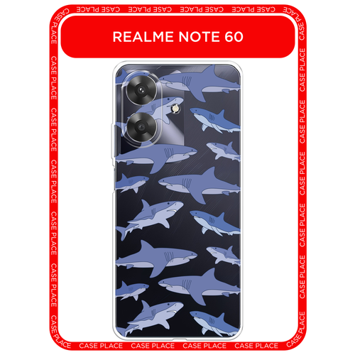 Чехол на Realme Note 60/60X / Реалми Нот 60/60X с принтом Акулы паттерн 2, прозрачный