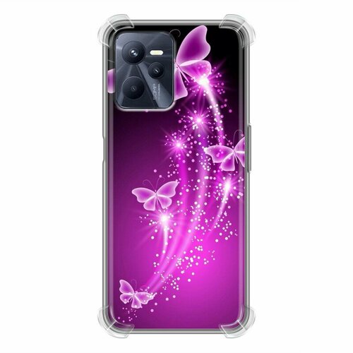 Дизайнерский силиконовый с усиленными углами чехол для Реалме С35 / Realme C35 Бабочки фиолетовые