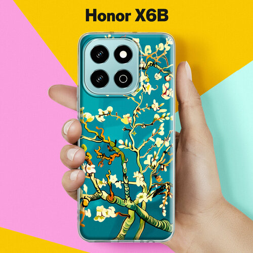 Силиконовый чехол на Honor X6B с принтом "Цветы ветка" с прозрачными бортиками