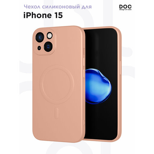 Чехол DesignOnCase "розовый", для iPhone 15, противоударный, силикон, soft-touch, с Магнитом