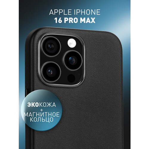 Чехол c магнитным кольцом Rosco для Apple iPhone 16 Pro Max (Айфон 16 Про Макс), защита камеры, экокожа