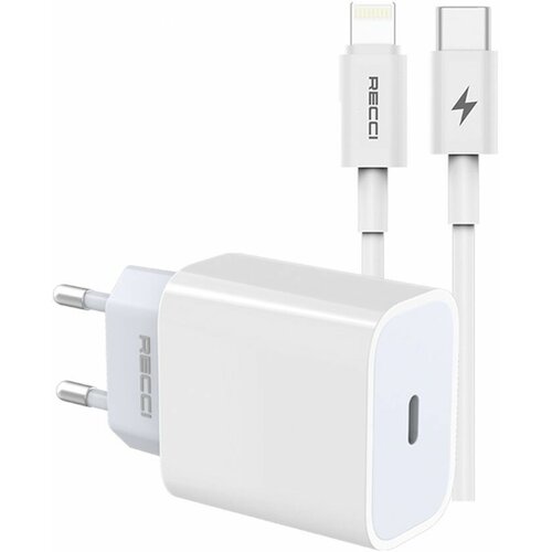 Зарядное устройство сетевое Recci RCK-16ECL с кабелем, Type-C быстрая зарядка PD3.0 20 Вт