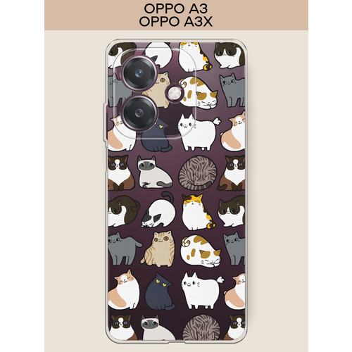 Чехол на Oppo A3/A3x / Оппо А3/A3x с принтом Милые котики, прозрачный