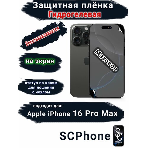 Защитная плёнка на экран для Apple iPhone 16 Pro Max матовая гидрогелевая стандарт под чехол с вырезом острова
