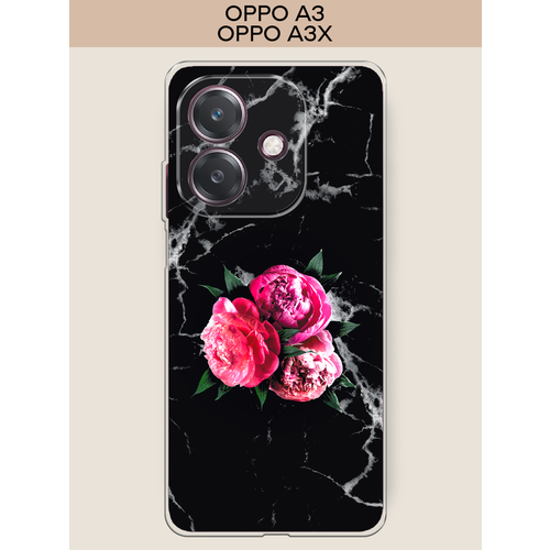 Чехол на Oppo A3/A3x / Оппо А3/A3x с принтом Пионы на черном