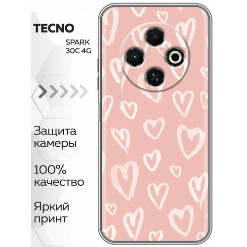 Чехол для Tecno Spark 30C с принтом Сердечки розовые (Техно Спарк 30С)